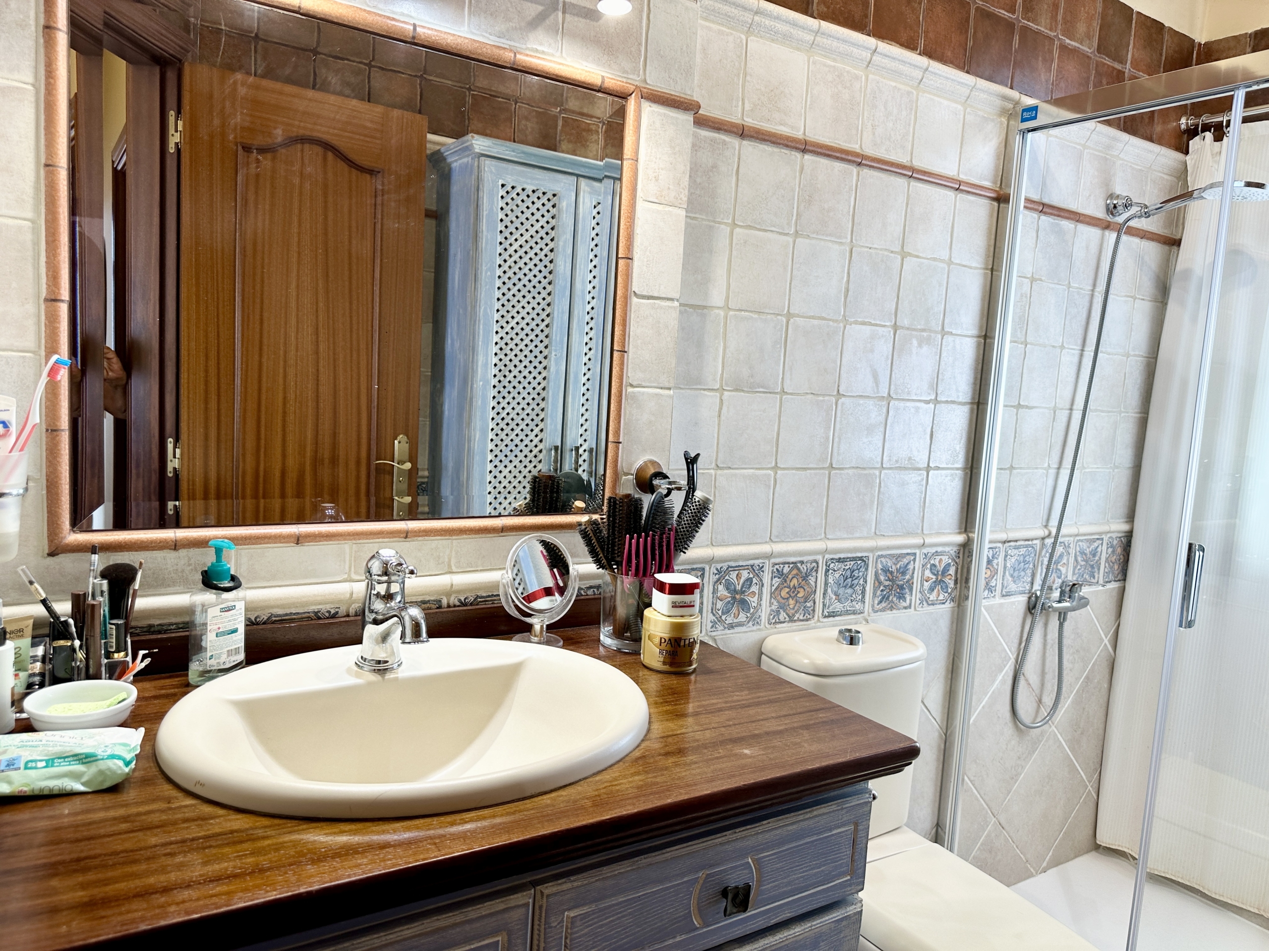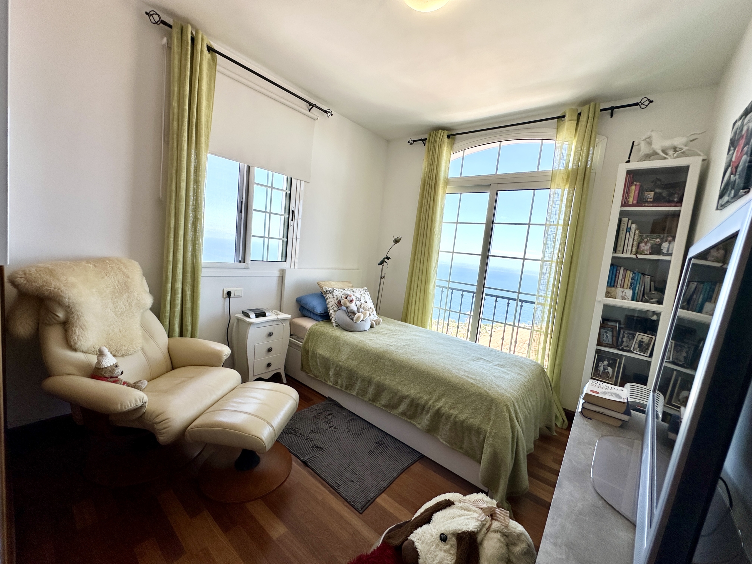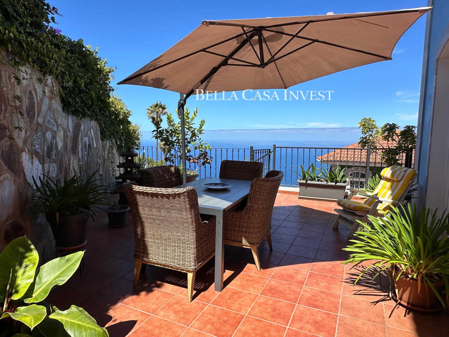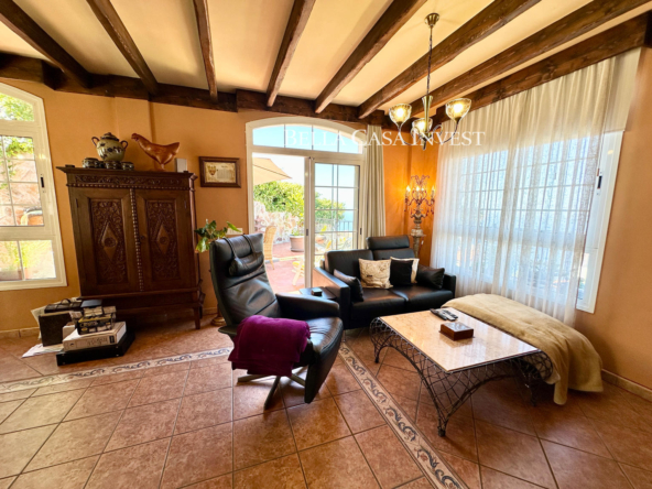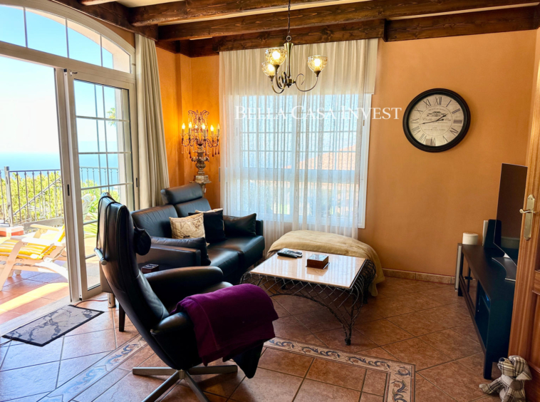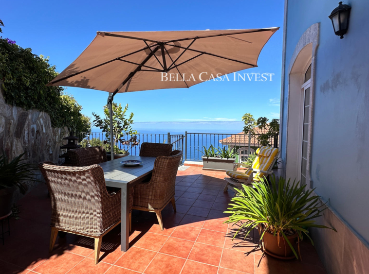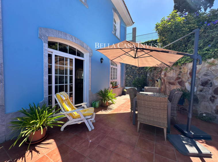Bella Casa Invest presents this immaculate two-storey semi-detached family home, a property that offers everything needed to become your perfect retreat. Boasting spectacular sea views and a spacious garage with room for two to three cars. This home is ideal for families seeking comfort, space, and style. The main floor, the bright and airy living-dining area features large windows that flood the space with natural light while framing stunning views of the Atlantic Ocean. The high-end, fully equipped kitchen flows seamlessly into the living area, creating a practical and elegant layout. This level also includes a guest toilet and direct access to a large, sunny terrace—perfect for outdoor living and entertaining.The upper floor offers three comfortable bedrooms. The master bedroom features a luxurious en-suite bathroom with a hydromassage bathtub and a private balcony, ideal for enjoying the fresh air. A second full bathroom with a shower serves the remaining bedrooms, ensuring comfort for the whole family.A charming rustic style runs throughout the property, highlighted by a beautiful wooden staircase that connects both floors and adds warmth and character. The home is bright, well-ventilated, and thoughtfully designed for family well-being. Located in a highly convenient area close to shops, schools, and an excellent selection of restaurants, this property truly has it all. Sold semi-furnished and ready to move into. This is a unique opportunity not to be missed.